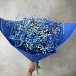 Гипсофила синяя – 7 шт.Упаковка дизайнерская – 2 шт.Лента – 1 шт.