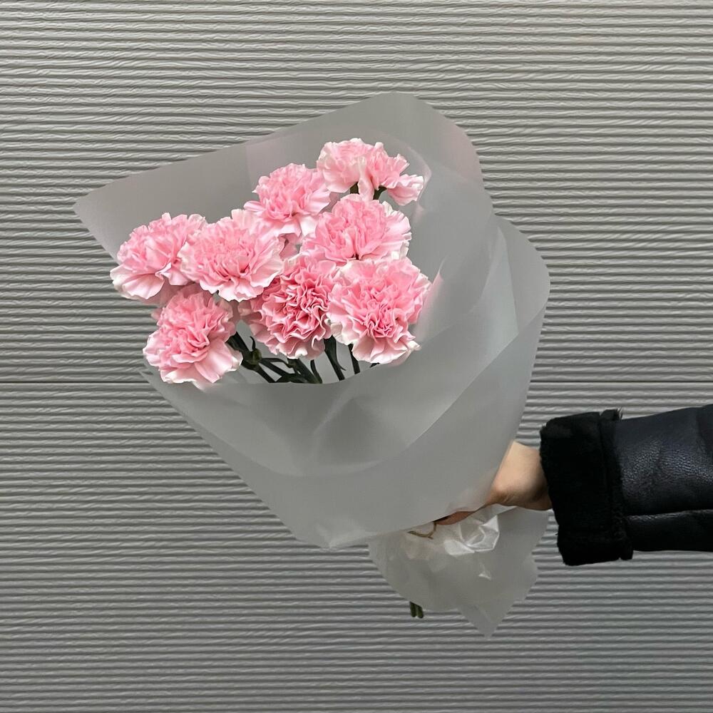 Стойкий букет из розовых диантусов в стильной упаковке