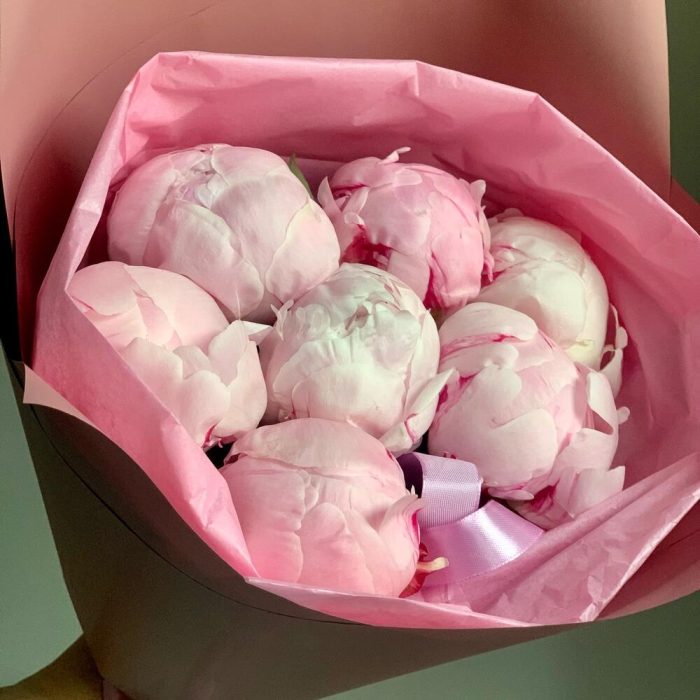 Лента – 3 шт.Упаковка дизайнерская – 4 шт.пион рене хортенс – 7 шт.