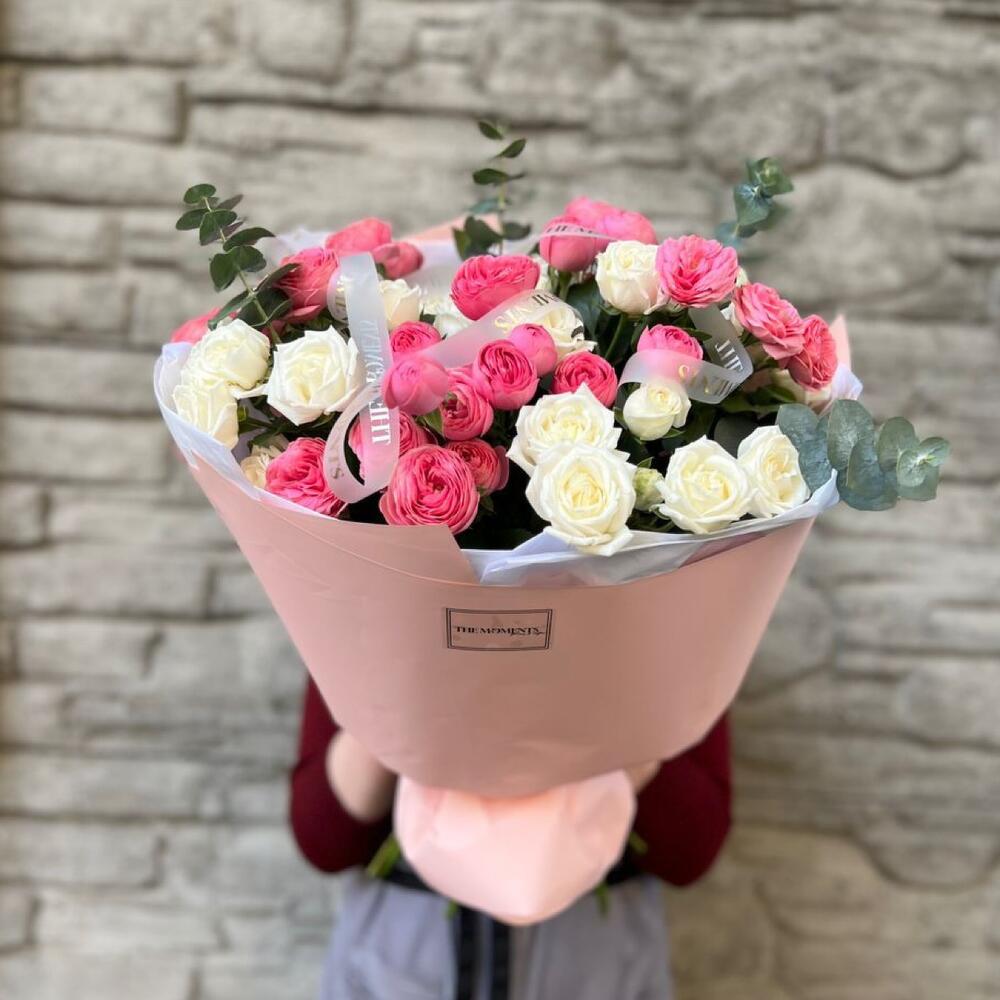 Гвоздики, Кустовые розы, Лизиантусы, Пионовидные розы, Розы