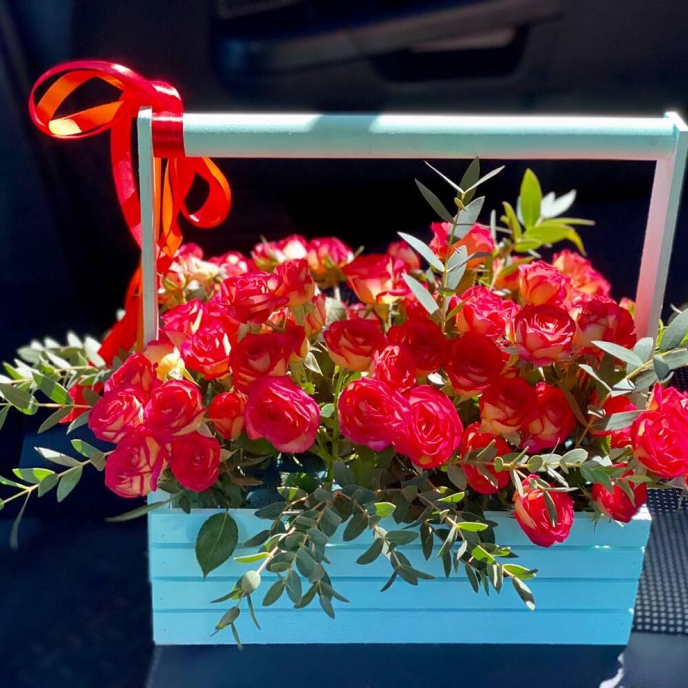 Кустовая роза в ящичке