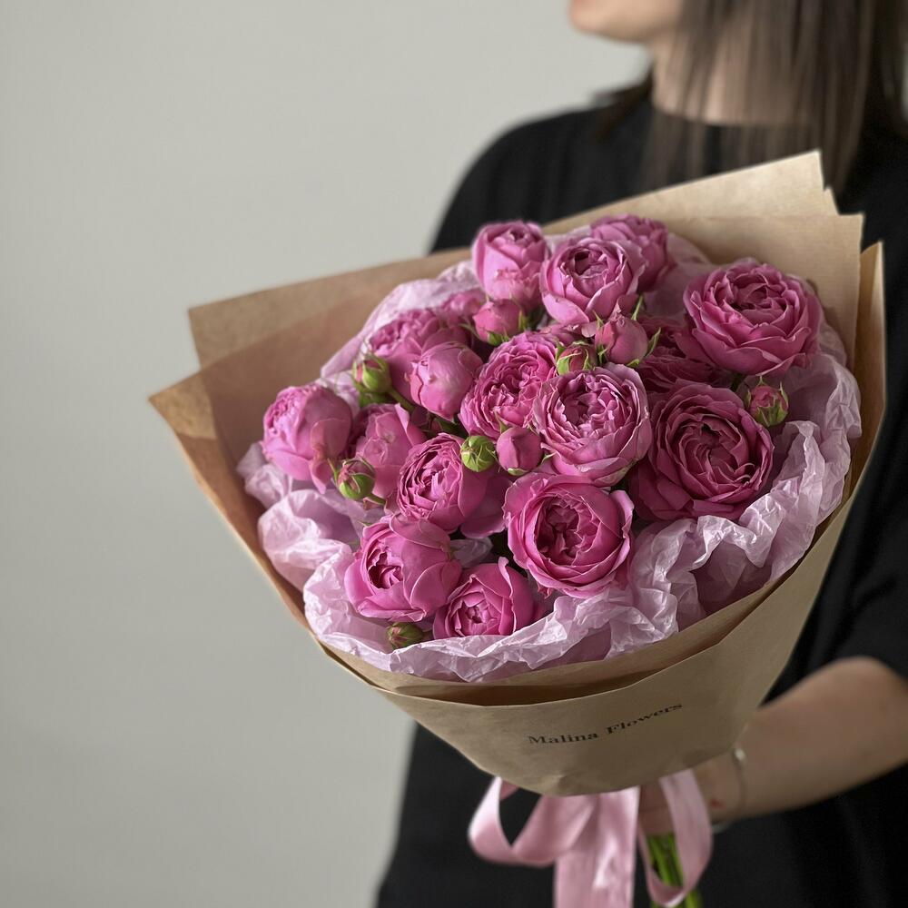Лента – 2 шт.Упаковка – 2 шт.Роза кустовая пионовидная – 5 шт.