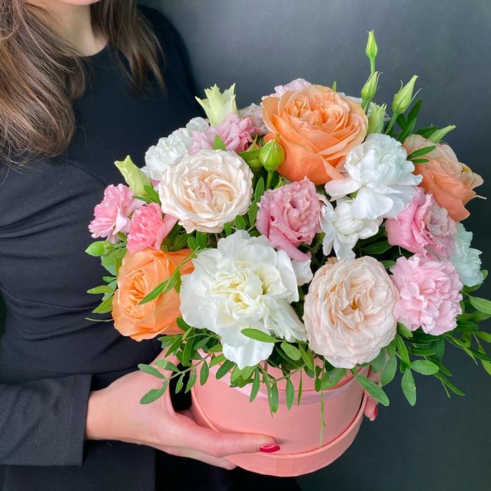 “В твоих глазах”: нежная шляпная коробка с французскими розами